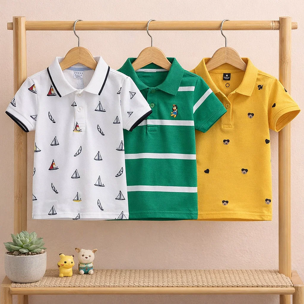 TMF-529 POLO T SHIRT Combo 3pcs-(white-cheak/green/yellow-love)