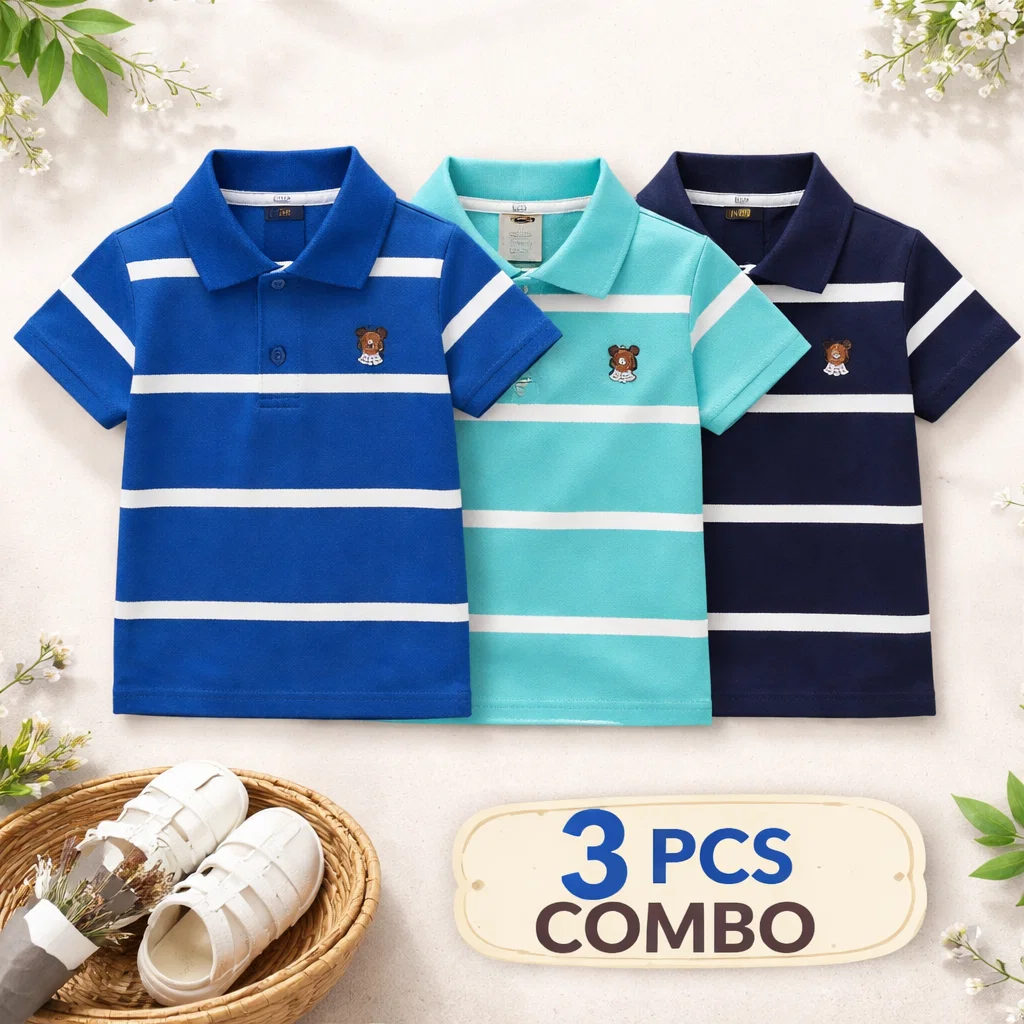 TMF-546 POLO T SHIRT Combo 3pcs-(blue/deep sky-blue/navy)